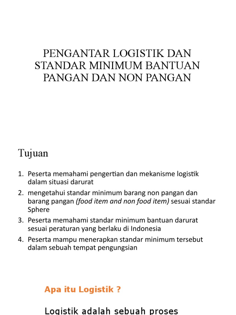 Materi Pengantar Logistik Standar Bantuan Pangan Dan Non Pangan Pdf