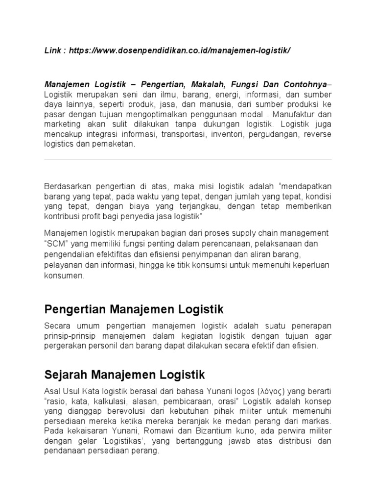 Pengertian Manajemen Logistik Peran Logistik Kaskus